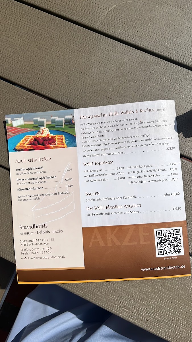 Café im Strandhotel Delphin Menu